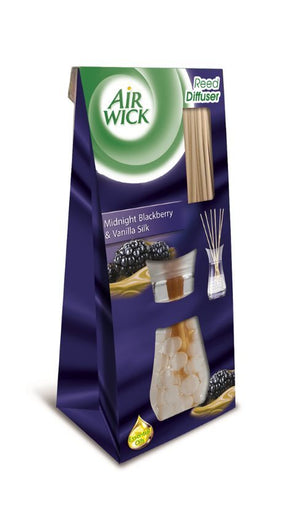 Odorizantul de camera Air Wick Reed Diffusers Midnight&Vanilla elibereaza parfum continuu cu ajutorul betelor de ratan. Parfumurile naturale si design-ul elegant creaza o atmosfera primitoare in casa si o aroma de mure si vanilie.