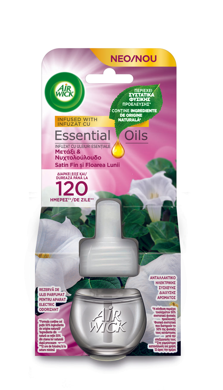 Air Wick rezerva odorizant electric de camera, Satin fin si Floarea Lunii, 19 ml