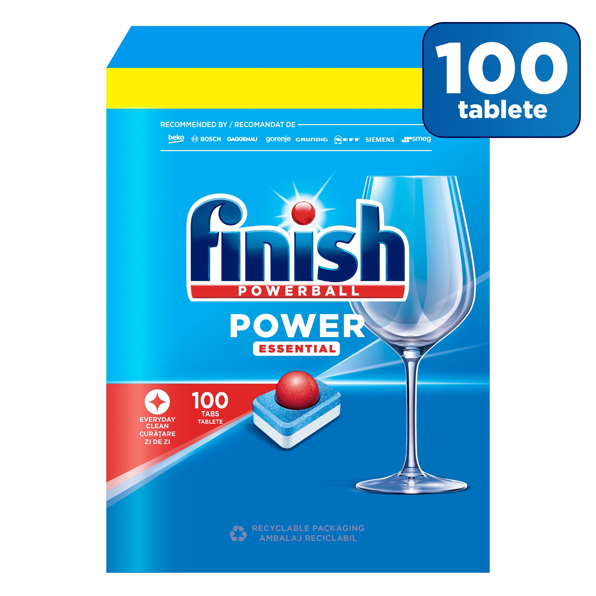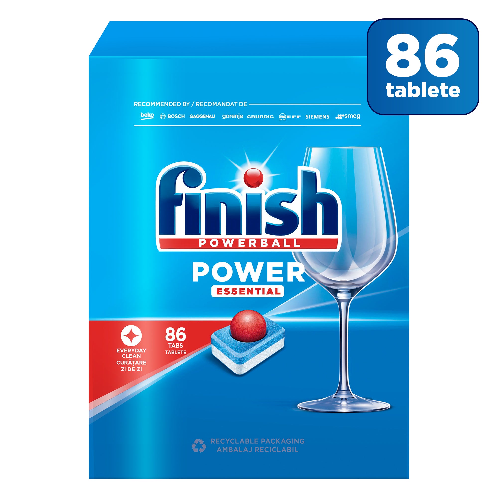 Detergentul pentru masina de spalat vase Finish Power Essential este solutia eficienta pentru vasele tale. Tehnologia Powerball asigura o curatare puternica de fiecare data.