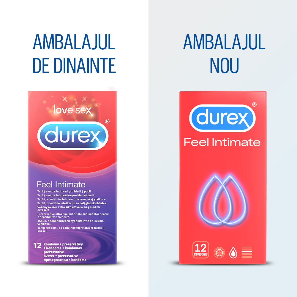 Prezervativ Durex Feel Intimate Cand vine vorba de sex, relatia trece la un alt nivel daca contactul este cat mai apropiat si mai intim. Pentru relatii sexuale cu adevarat apropiate si intime incercati prezervativul Durex Feel Intimate! Luand in considerare nevoile tale, prezervativul Durex Feel Intimate este un prezervativ ultra fin, lubrifiat suplimentar pentru o senzatie catifelata si pentru o apropiere mai intima. Datorita modalitatii de fabricatie a prezervativelor Durex Feel Intimate, acestea au un miros mai placut, astfel ca nimic nu iti va distrage atentia, deci relaxeaza-te pur si simplu si bucura-te din plin!
